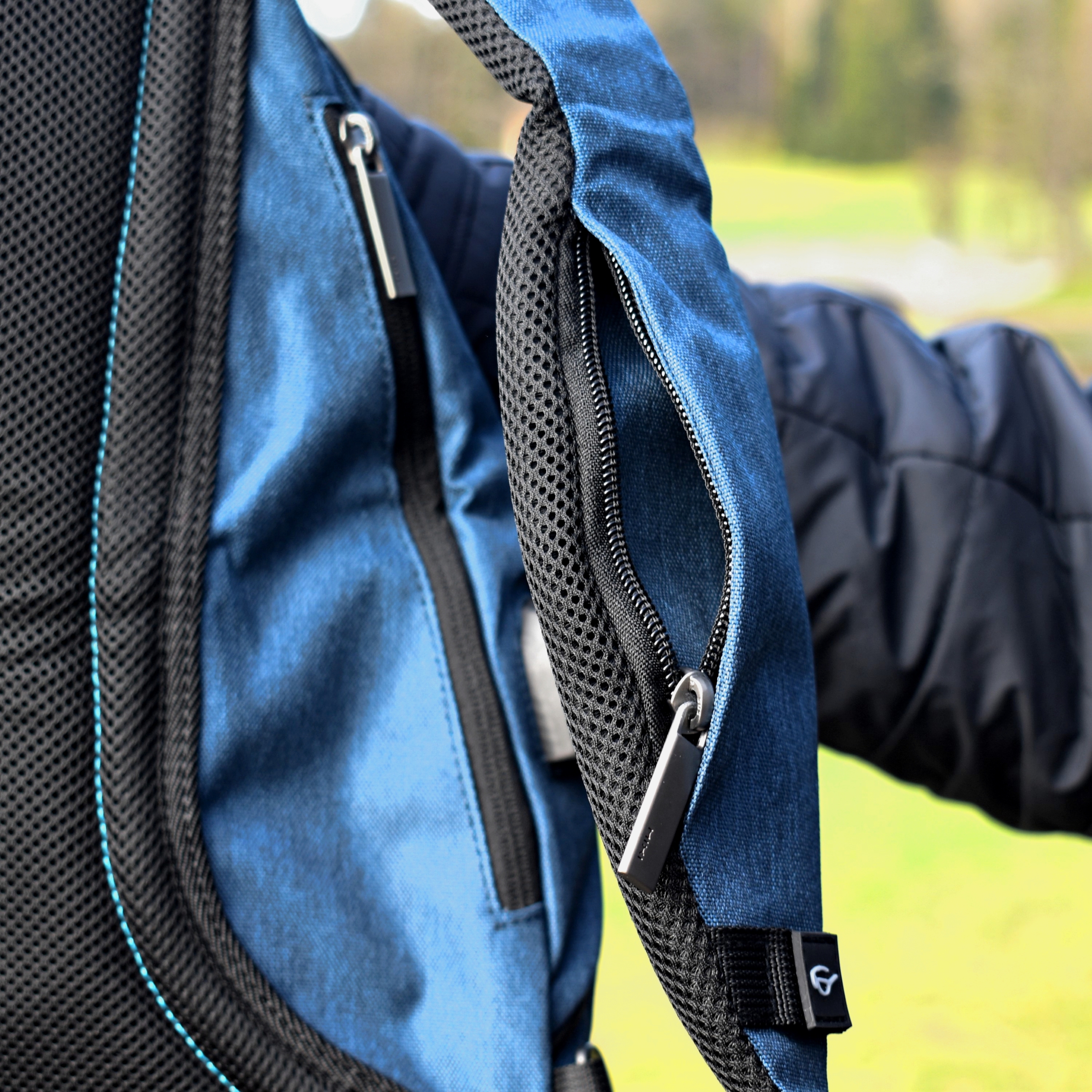 the backpack I wanted captive, comfortable and practical There is a feeder for cards on the strap feeder for the wallet on the back front key feeder on the side is food for the bottle/zone