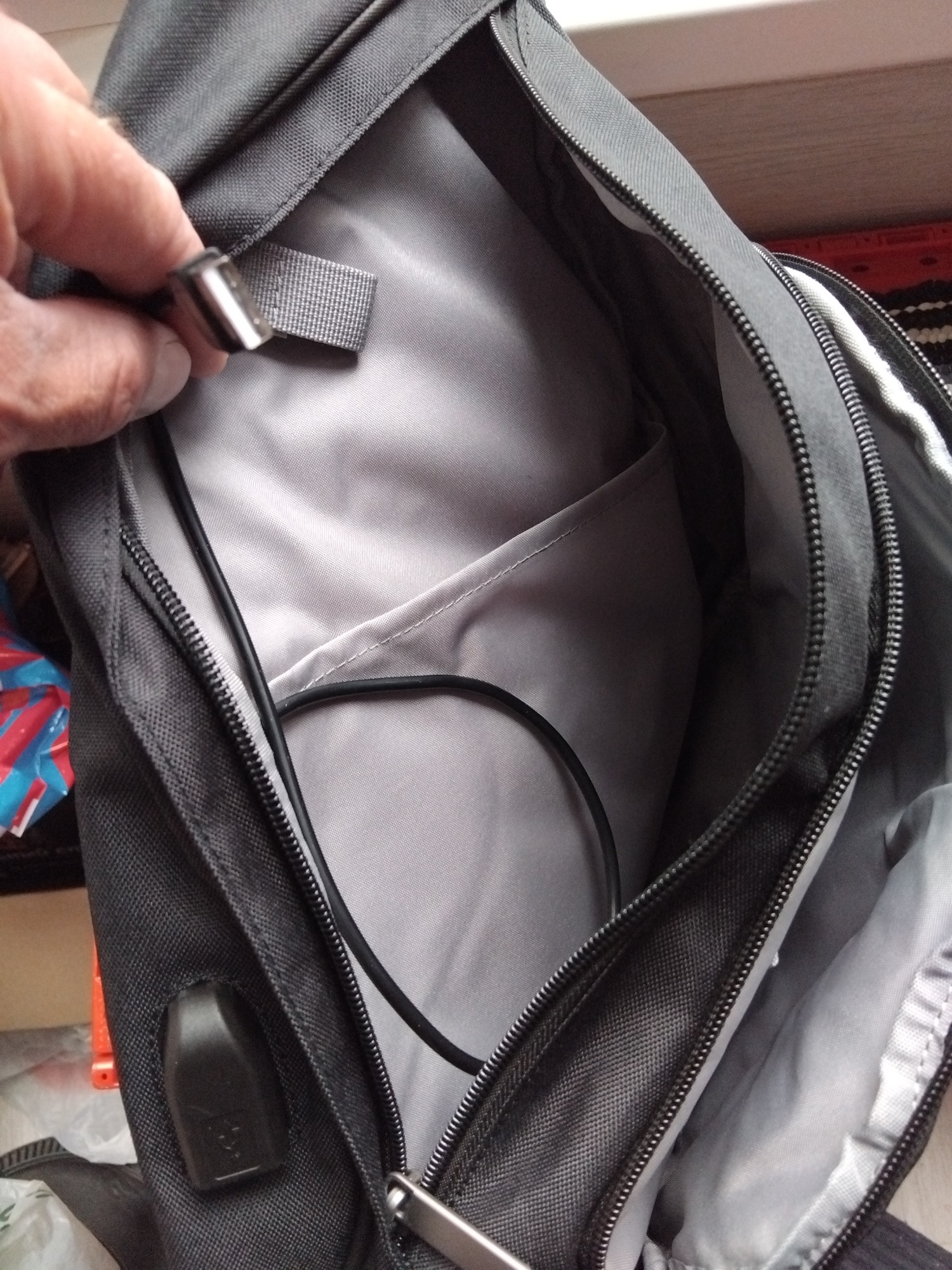 Excellent backpack. I thought it would be flimsy for such a price. But it turned out to be strong, the zippers are also good. I immediately treated them with paraffin. . From rain and better sliding. Walked in the rain with it - it really doesn't get wet. The pockets on the inside also have a waterproof lining. Lightweight and spacious. The USB cable is inserted and exposed externally in a sealed design. You can put the power bank in the backpack and connect it, and from the outside, you can already connect the phone.